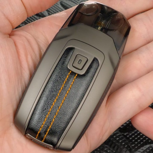 Нельзя сказать, что Geekvape Aegis Pod System очень компактная POD-система, так как ее размеры составляют 87.7*17.7*40 мм при весе около 70 грамм. Дизайнеры компании поработали на славу, так как им не только удалось продолжить общую стилистику линейки Aegis, но и использовать в оформлении не только цинковый сплав, но и искусственную кожу и резину.