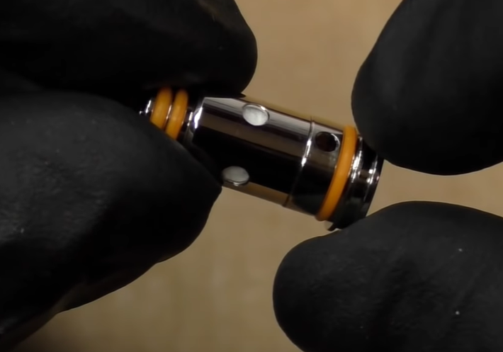 Разработчики компании Geekvape приняли решение сделать картридж Aegis Pod без магнитных держателей, что с одной стороны хорошо, так как он удерживается в батарейном блоке при помощи защелок, а с другой не очень – вынуть его влажными руками практически невозможно.